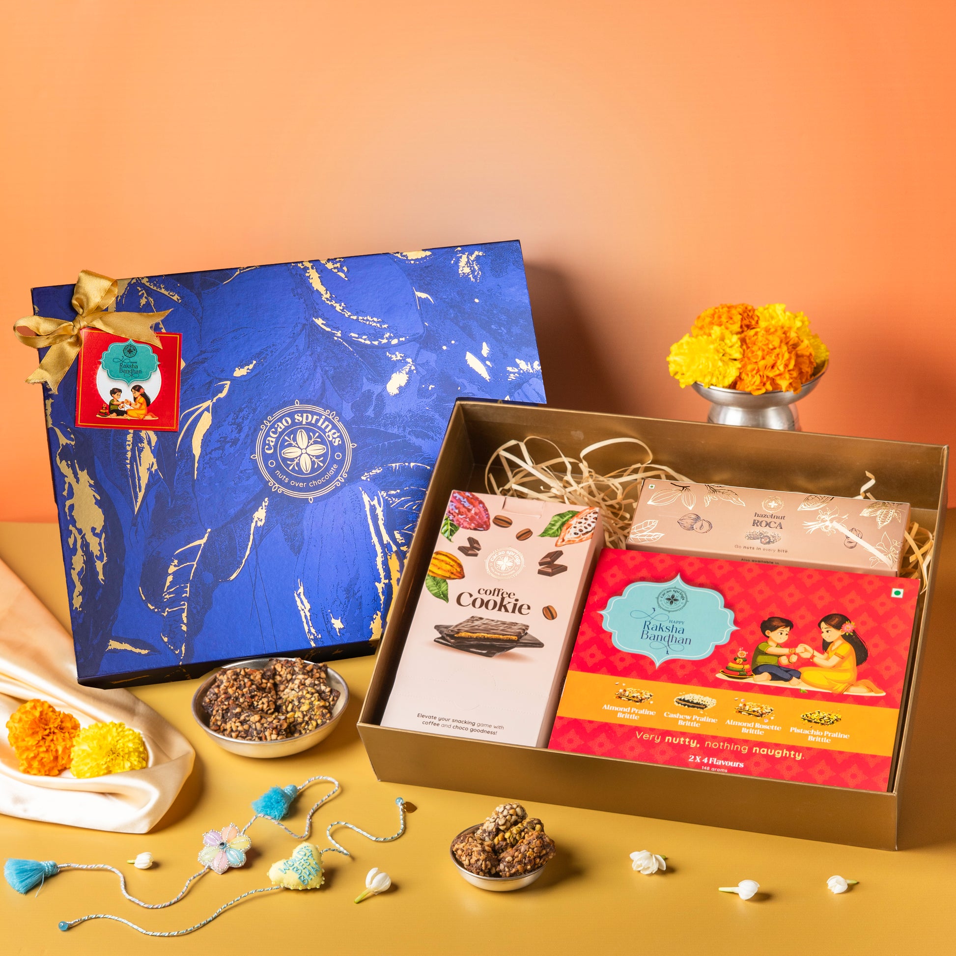 Whether it's for a celebration or a thoughtful gesture, the Rakhi Indigo Gift Box offers an irresistible combination of sweet indulgence and wholesome snacks. Perfect for gifting or enjoying with loved ones, this box brings a touch of elegance and delight to any occasion.